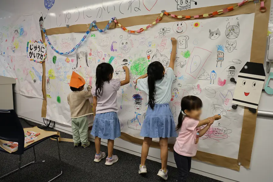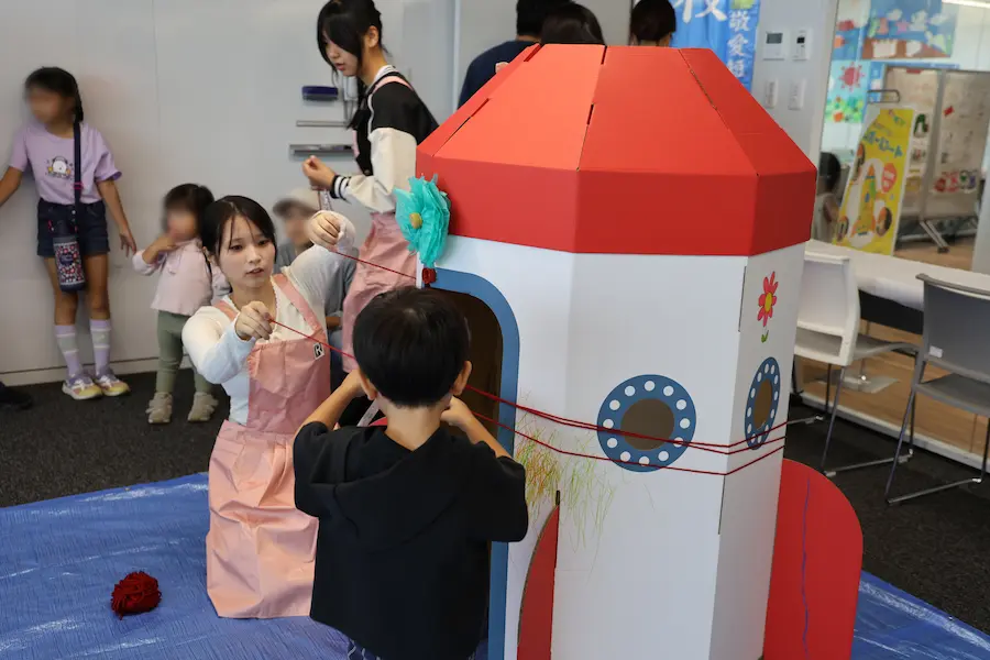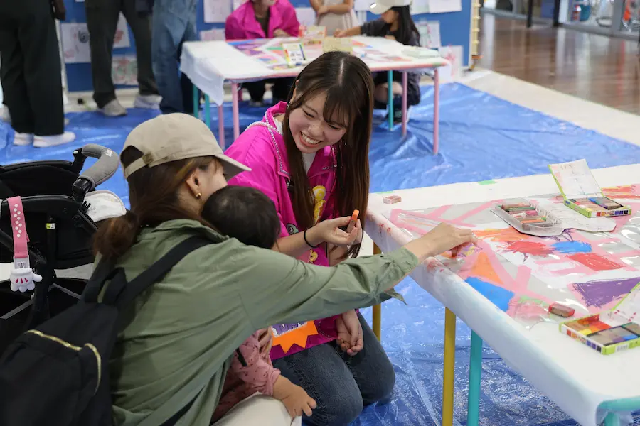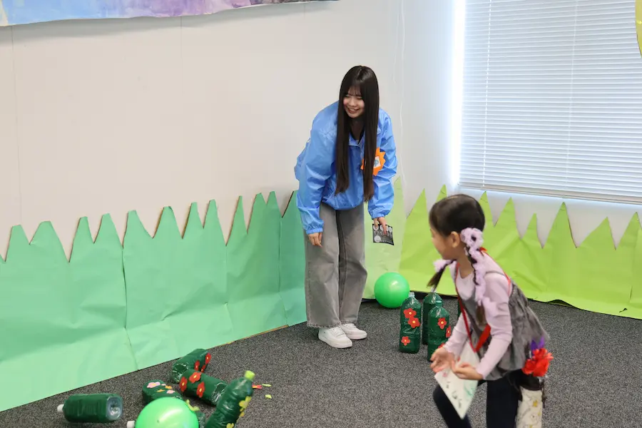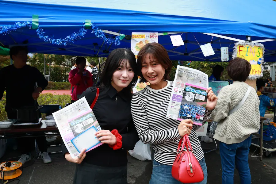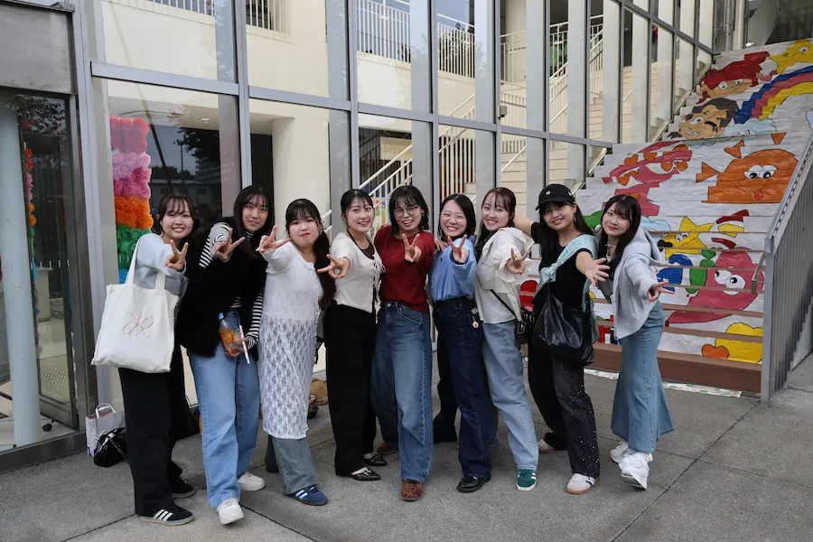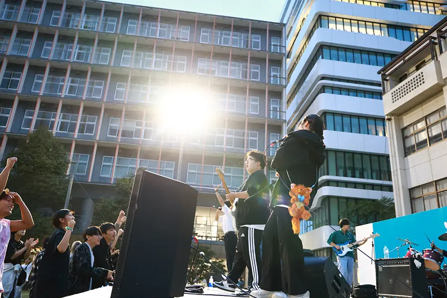 今年は例年以上に多彩な催しが実現しました。クラブやサークルによる展示・発表、飲食模擬店などのほか、短大ではクラスごとに子ども向けの参加型企画や合唱祭が行われました。会場には家族連れの姿も多く見られ、教育学部や短期大学の学生たちがブースで子どもたちと笑顔で触れ合う様子が印象的でした。また、新たな試みとして逆バンジーや3Dシアター、そして人気バンド「wacci」による特別ライブも実施しました。来場者数は過去最多の3847人に達し、キャンパスが熱気と歓声に包まれました。
