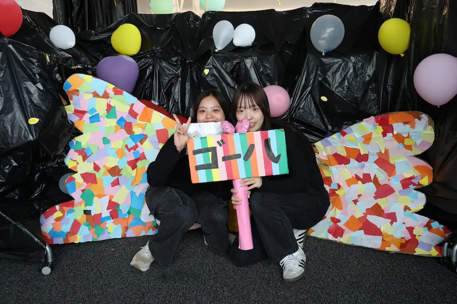 敬愛フェスティバルの最大の特徴は、学生主体の運営です。大学生・短大生合わせて266名の実行委員が部門ごとに分かれ、企画・広報・音響・装飾・出店衛生管理などの役割を担いました。準備段階から互いに協力し合い、ひとつひとつ積み上げてきた「手作り感満載」の大学祭です。普段あまり関わりのない学生同士が協働することで、新しい友人関係が生まれたり、互いの信頼を深めてあっていったり――そんな学生同士の出会いと友情が育まれる場にもなっています。