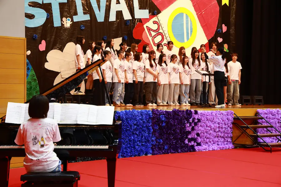 授業の合間を縫って、練習してきた合唱を披露しました。