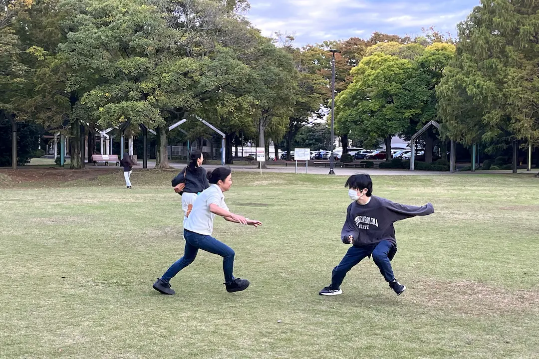 公園では「ドロケイ(けいさつと泥棒のオニごっこ)」を体験しました。