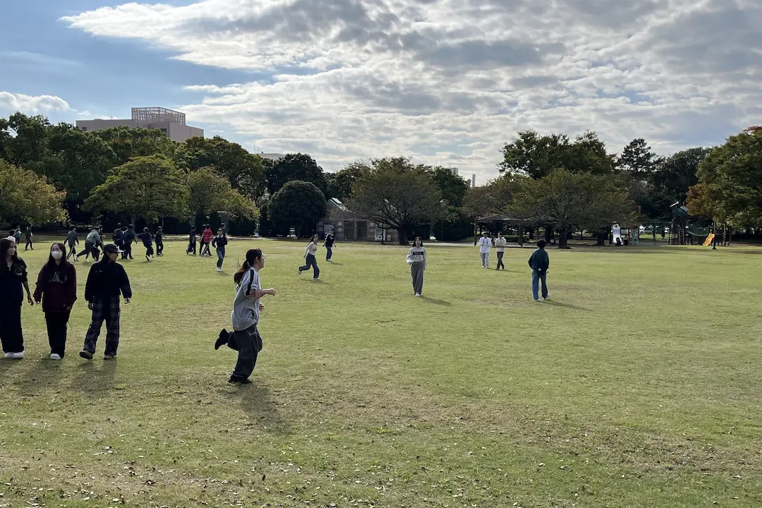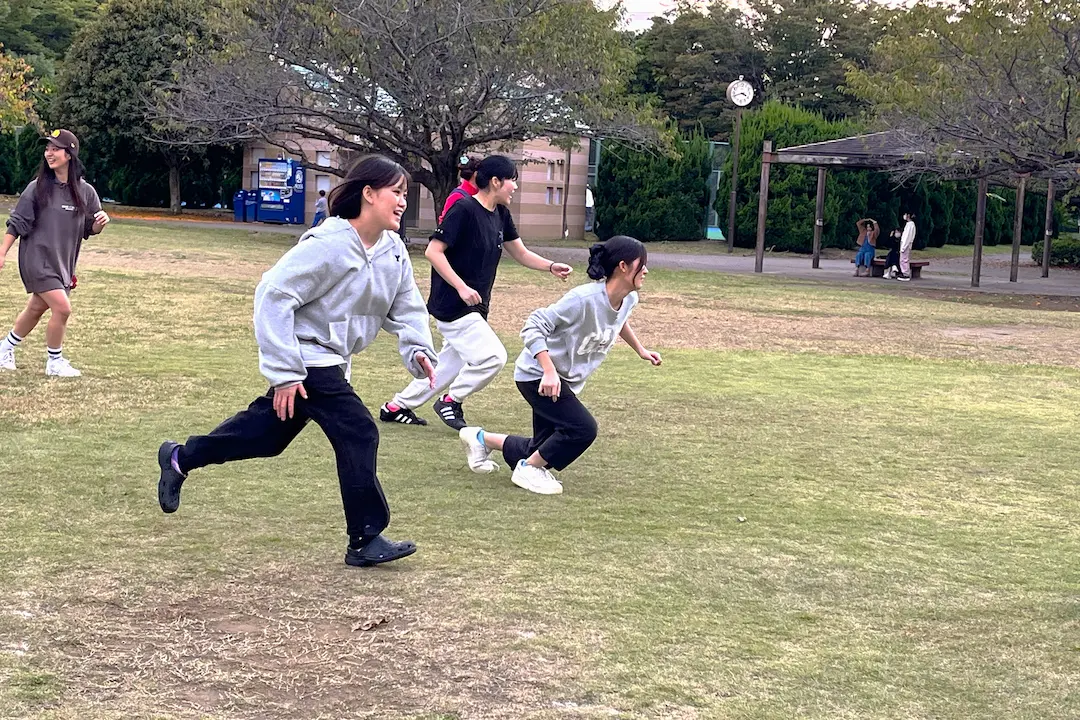 学生たちは、はじめから大人が決めたルールで遊ぶのではなく、自分たちで考えたルールで遊ぶ“ドロケイの面白さ”を体験しました。子どもたちが夢中で遊び込む背景には、こうした「自分たちで作る」楽しさがあります。授業では、その楽しさを自ら体験することで、子どもたちの遊びの世界をより深く理解していきました。