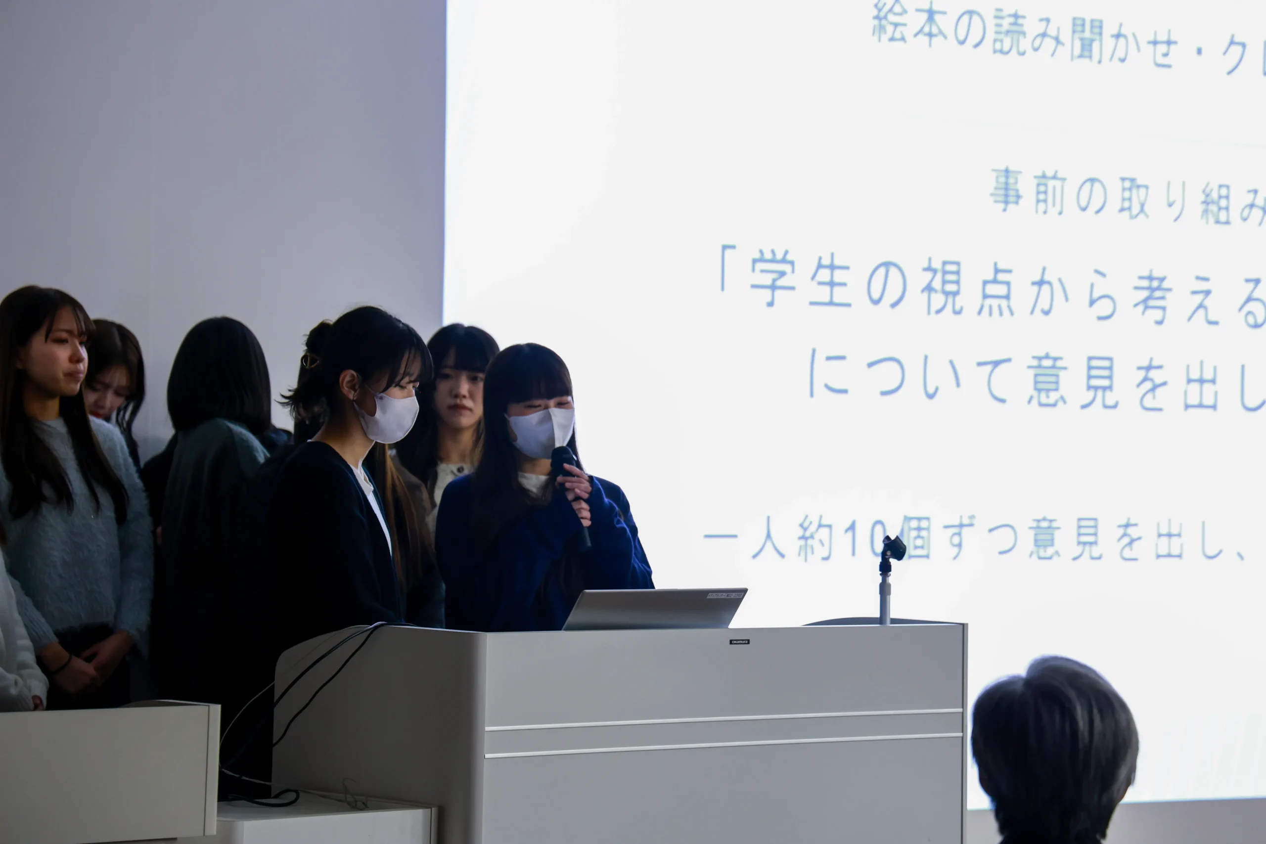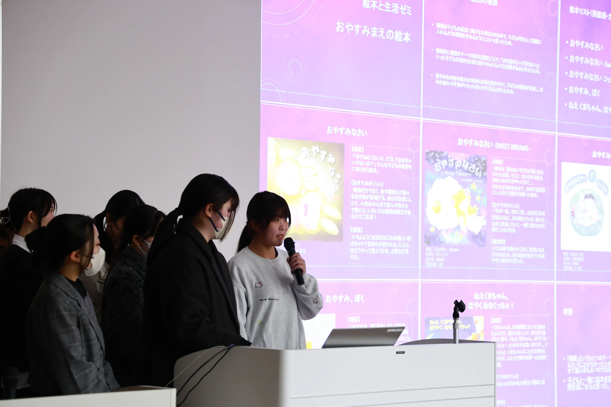 ブラッシュアップゼミは、「これ、やってみたい」という気持ちを出発点に、保育に関するプロジェクトに取り組むゼミです。学生は自分の興味に合ったゼミを選び、仲間と協力しながら学びを深めていきます。報告会では、各ゼミが進めてきたプロジェクトの内容や学びの成果を発表しました。