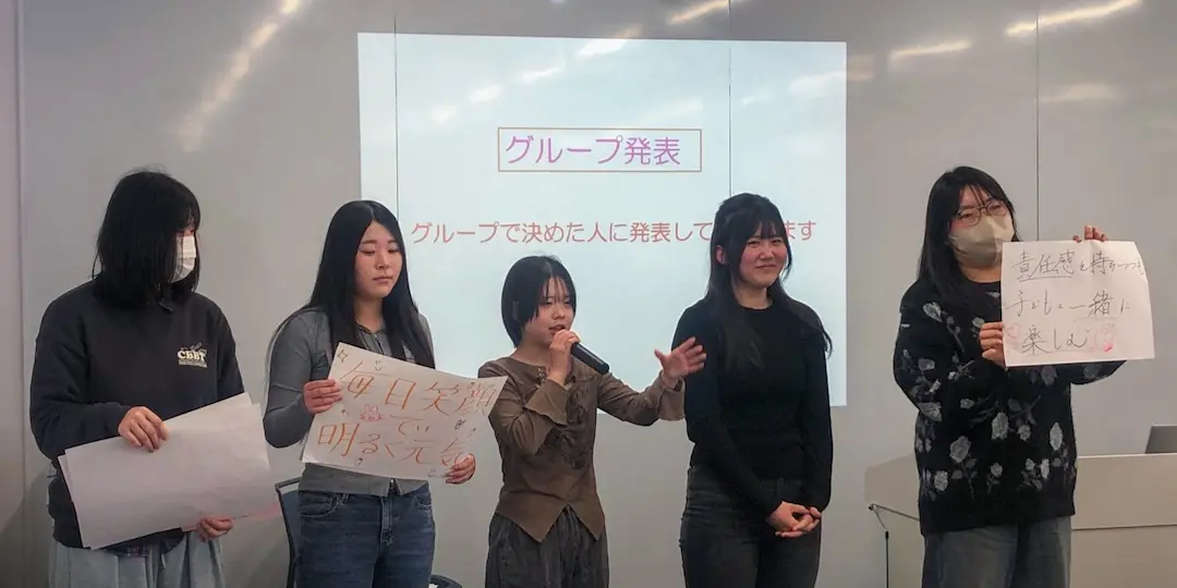 - みんなの意見を聞くことができてとても参考になりました。ほかの人の意見を取り入れることでもっと良い保育者になれる気がします!とても楽しかったです!!