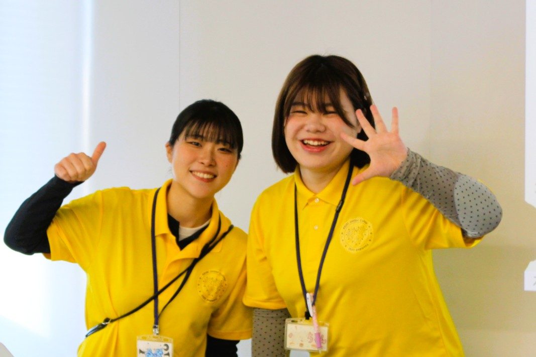 進行を担当した学生スタッフの2人。笑顔で場を盛り上げ、来場者をリードする姿が会場の雰囲気を明るくしていました。最後は「また来てね!」と声をかけながら見送る姿が印象的でした。